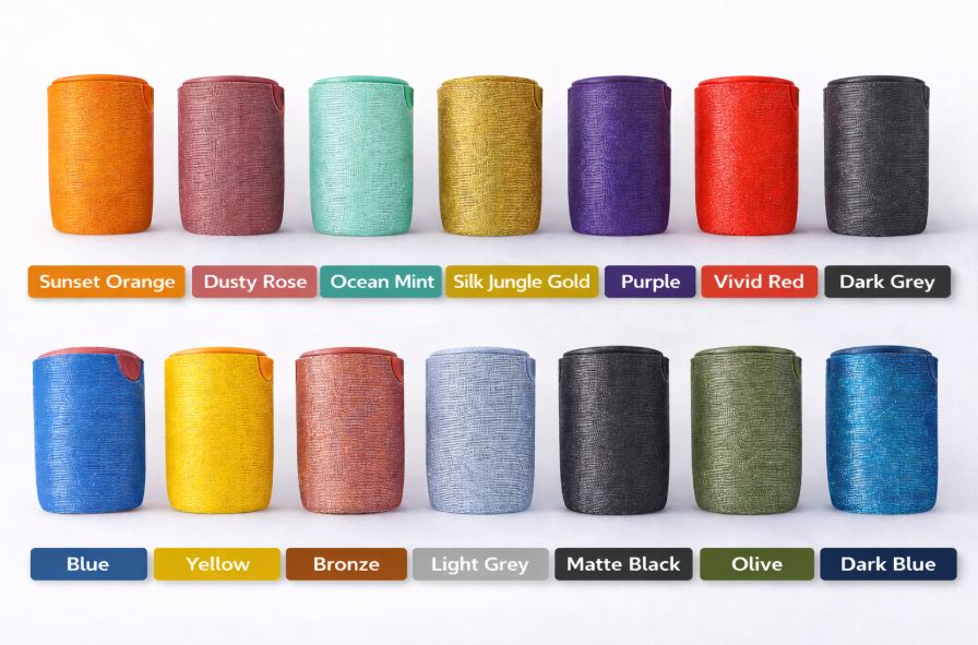 - Combination options (body in one color, lid in another)
