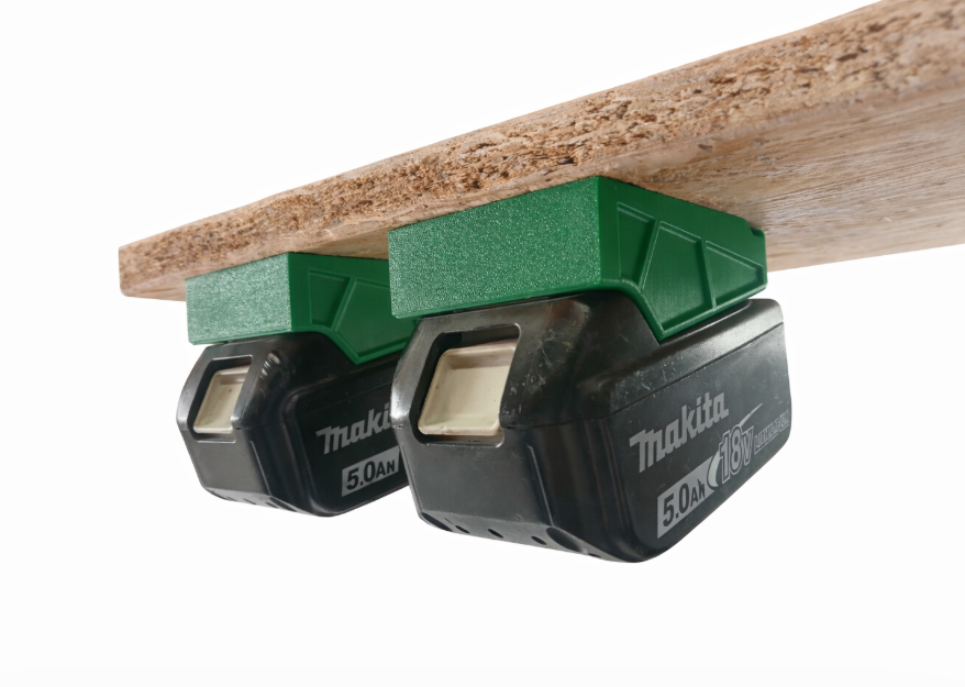 Durable wall mount holder designed for Makita 18V batteries, manufactured using high-precision 3D printing from strong ASA engineering plastic.