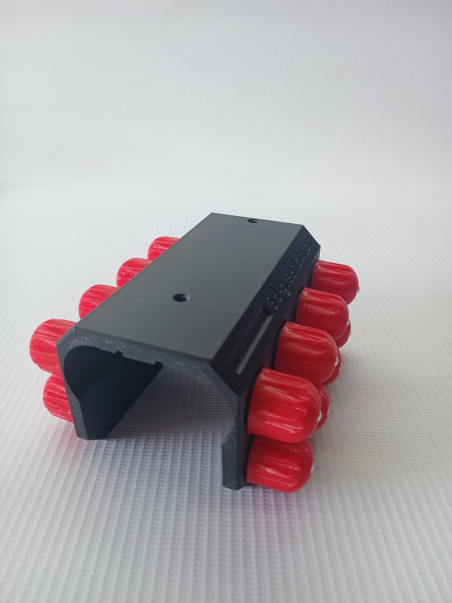 A durable and reliable attachment for storing and feeding rubber pellets, made from high-quality ASA plastic and carbon.