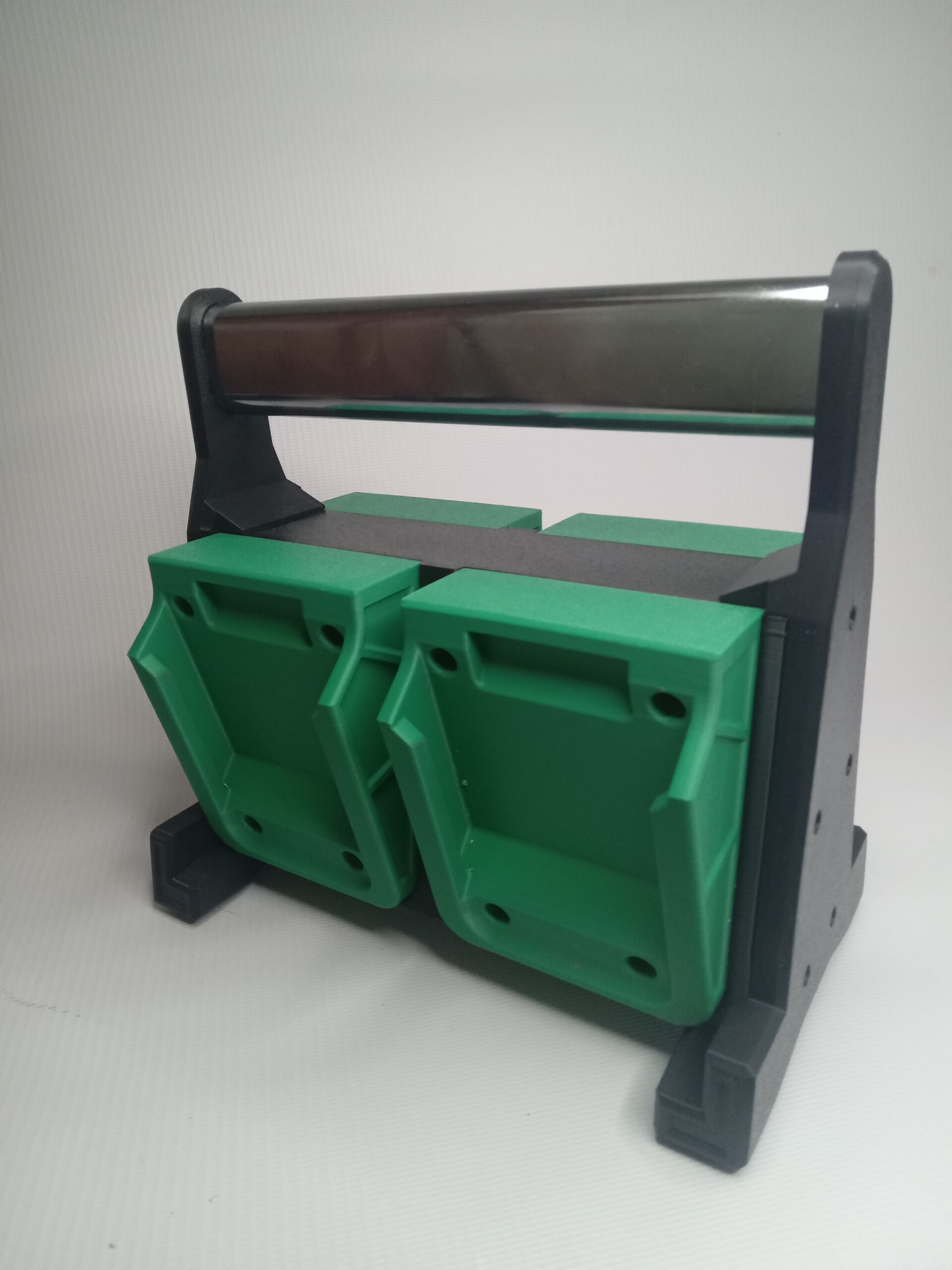 Professional portable holder for 18V Li-Ion batteries — a reliable solution for safe storage and convenient transport.